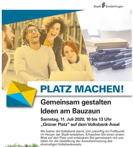 Für den Samstag, 11. Juli wird von 10-13 Uhr eingeladen, gemeinsam mit „Ideen am Bauzaun“ die Zukunft des Platzes zu gestalten.