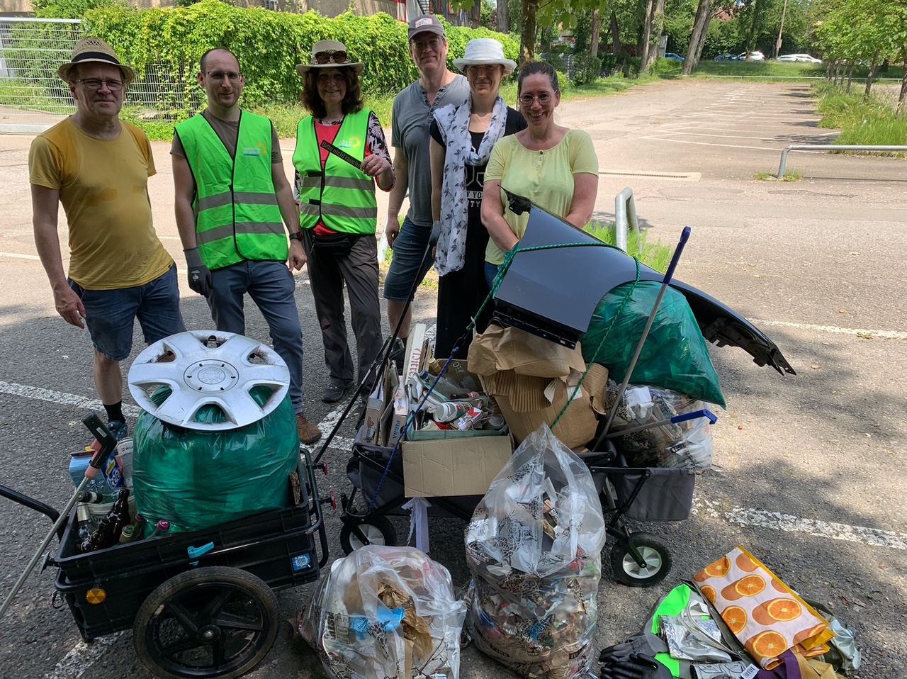 „Ist das jetzt eine gute Putzete gewesen?“ war die Frage einer der 8 Teilnehmerinnen nach zwei Stunden Putzete, die der Ortsverband der Grünen am Samstag den 14. Juni organisiert hat. Die Route führte von der Gottlieb-Daimler-Schule entlang der Neckarstraße bis zur Yeanshalle und am Goldbach zurück. Gut ist, dass nun sehr viel weniger Müll rumliegt. Erschreckend ist, dass schon wieder über 60 Kilogramm eingesammelt werden konnten: wie immer viele Zigarettenreste und Einwegbecher, Umverpackungen von Fast Food, Glas und Dosen sowie Plastiktüten. Jedoch auch ein defekter Tretroller und ein kompletter Kotflügel.